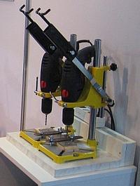 A tesztet két gépen végeztük egyidőben ugyanabban az anyagban, azonos forgácsolóerővel, amit a fúrógépek karjára akasztott 4-4 kg súly biztosított. Tivoly gyártmányú 5 mm átmérőjű fúrókat használtunk: az egyik gépbe a hagyományos köszörült hornyú, a másikba az elsősorban ajánlott bevonatos fúrót tettük. Egyszerre indítottuk a gépeket és a fúrás idejét mértük.